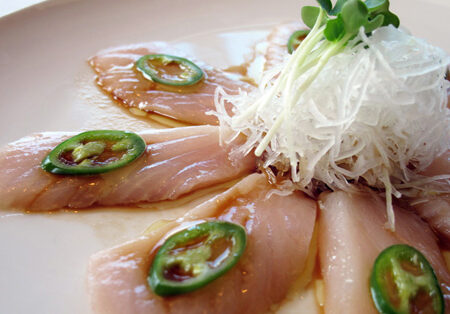 Spicy tuna, avocado, cilantro topped with yellowtail, pico de gallo, garlic oil, and ponzu sauce